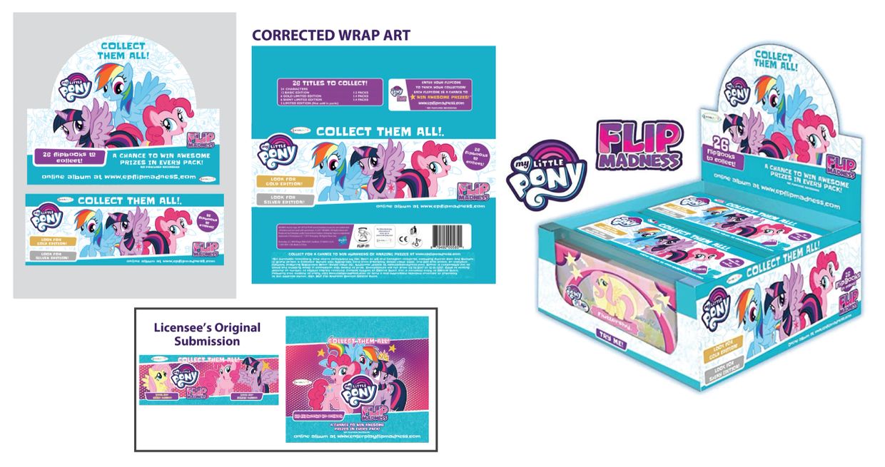 After several attempts by the licensee. I designed the packaging to incorporate the MLP brand look, while still maintaining the unique format.